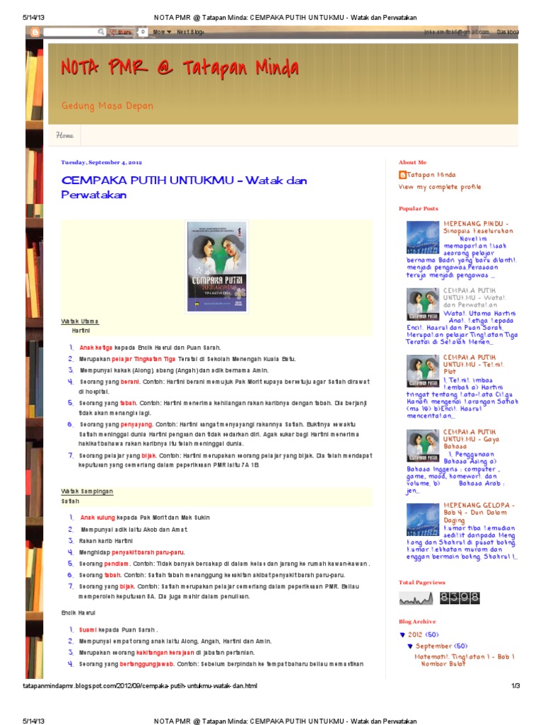 Nota Pmr @ Tatapan Minda_ Cempaka Putih Untukmu - Watak via www.scribd.com